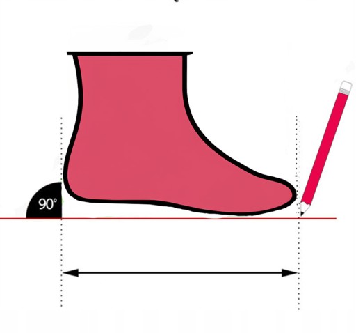 Aby dokładnie zmierzyć długość stopy, należy umieścić stopę na papierze i dokładnie ją obrysować. Następnie należy zmierzyć odległość w centymetrach pomiędzy początkiem najdłuższego palca, a końcem pięty.