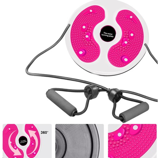 TWIST WAIST DISC, TWISTER OBROTOWY TALERZ DO ĆWICZEŃ FITNESS SLIM Z MASAŻER STÓP I LINKAMI. RÓŻOWY 28CM
