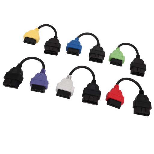 2. Cecha: zestaw adapterów zawiera 6 sztuk kabla diagnostycznego OBD2, z różnymi kolorami złączy, łatwe do zidentyfikowania, dostępne w celu wymiany oprogramowania MultiECUScan dla pojazdów grupy Fiat.
