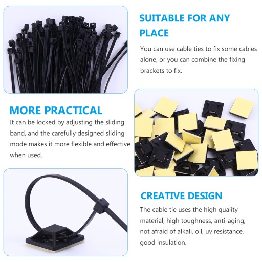 ✅ Składa się z opasek kablowych po 100 sztuk i wsporników mocujących po 100 sztuk.