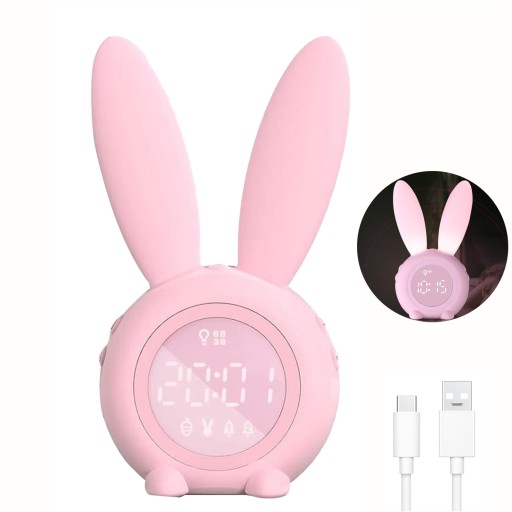 ДЕТСКИЙ БУДИЛЬНИК КРОЛИК ЧАСЫ LED НОЧНИК С ТАЙМЕРОМ ДЛЯ ДЕТЕЙ