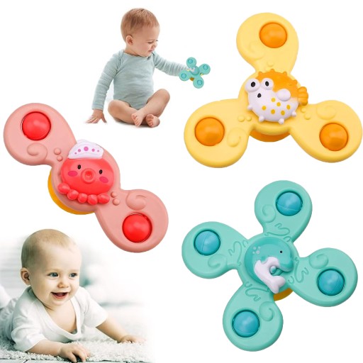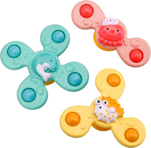 FIDGET SPINNER ZABAWKA SENSORYCZNĄ Z PRZYSSAWKĄ 3 SZTUKI KĄPIEL GRZECHOTKA ROZDYMKA TYGRYSIA 🐡 / OŚMIORNICA 🐙 / DELFIN 🐬