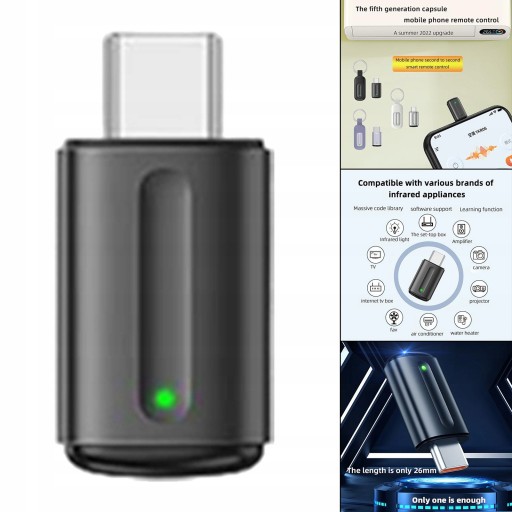 Adapter Pilota Na Podczerwień Do Smartfona Typ C Do Telefonu Odtwarzacz DVD Czarny