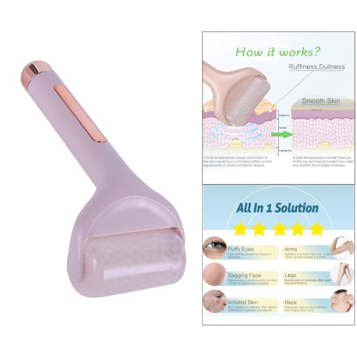 Masażer Do Twarzy Z Rolkami Lodowymi Na Obrzęki Ciemne Koła Bolesność Mięśni Różowy