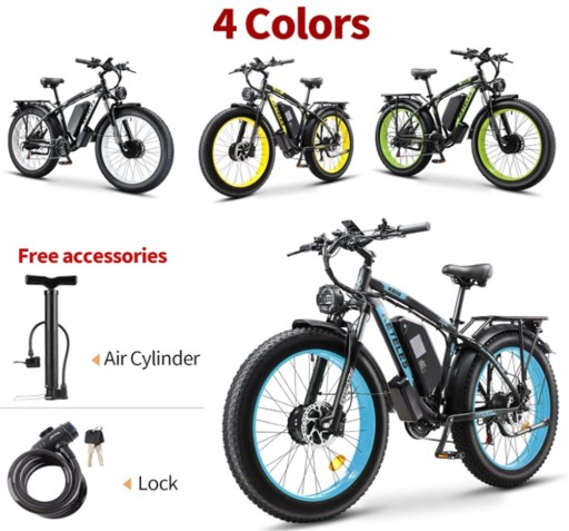 Rower elektryczny o mocy 2000 W(silnik przedni 1000 W + silnik przedni 1000 W)