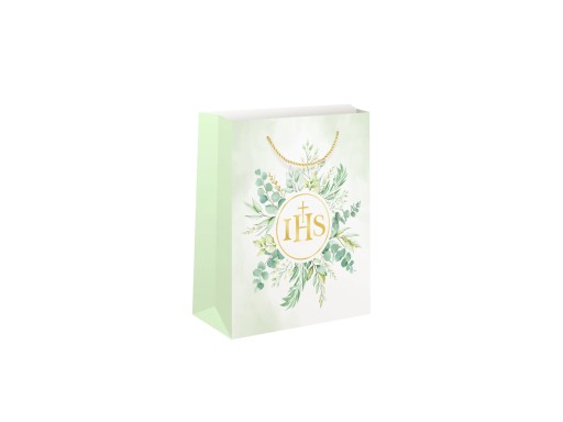 Torebka prezentowa Hostia IHS z zielonymi listkami na I Komunię Świętą mała - 1 szt.