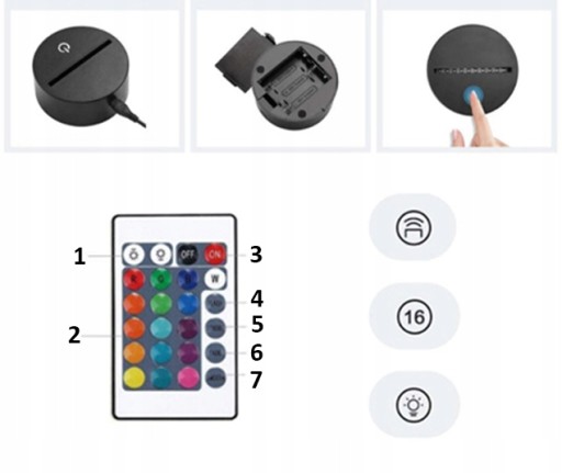 Podstawka lampki wyposażona jest w podświetlenie LED, które świeci się na 16 różnych kolorów. Dzięki pilotowi kontrolnemu można wybierać do woli jeden z dostępnych kolorów, regulować jasność, aby np. dziecko mogło zasypiać przy przyciemniony lub można wybrać jeden z 4 specjalnych trybów, które nadadzą dodatkowych wrażeń i klimatu.