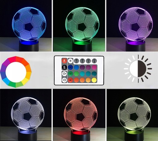 Lampka Nocna Biurkowa Piłka Nożna dla Piłkarza Dzieci 3D LED Kolory + Pilot
