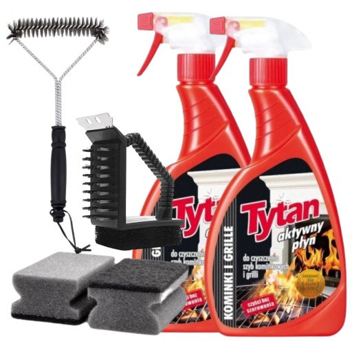 ZESTAW DO CZYSZCZENIE GRILLA ŚRODEK 2x PŁYN TYTAN SZCZOTKA GĄBKA