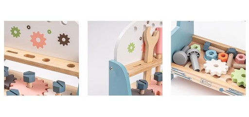 Elementy posiadają przyjemne dla oka kolory aby zachęcić dziecko do zabawy. Innowacyjny warsztat zapewni Twojemu maluchowi przestrzeń do kreatywnej zabawy i odkrywania pasji majsterkowania!
