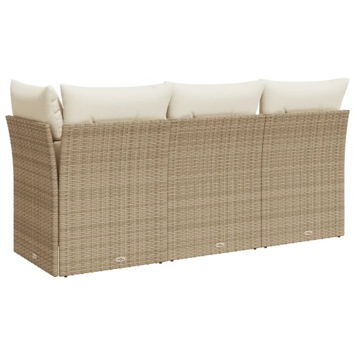 Sofa ogrodowa z poduszkami, 3-osobowa, beżowa, polirattan