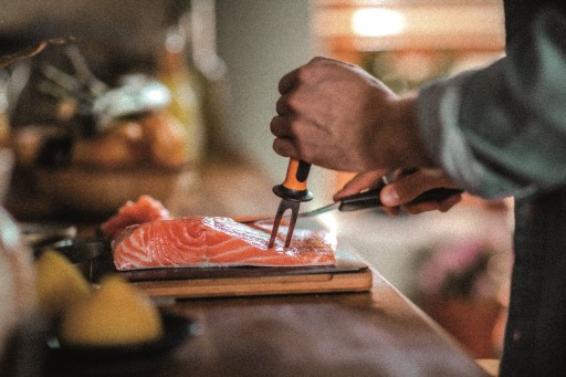 Widelec firmy FISKARS, z dwoma długimi na 7 cm ząbkami, będzie bardzo pomocny przy krojeniu i serwowaniu ryb.