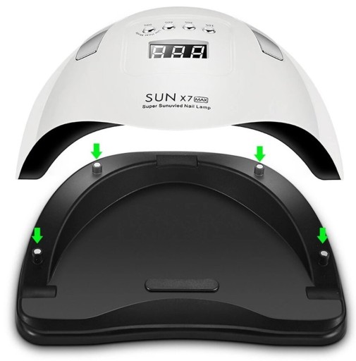 Panel dolny lampy jest przytwierdzony za pomocą magnesów, co ułatwia jego odpięcie do aplikacji pedicure. Duży elektroniczny wyświetlacz ułatwia obsługę.