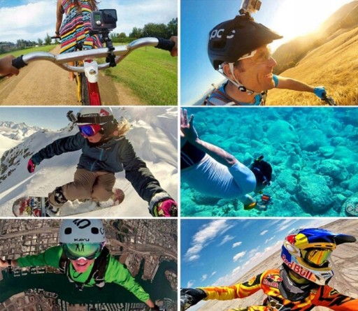 Akcesoria pozwalają na idealne ujęcia w niemal każdych warunkach. W zestawie znajdziesz m.in. uchwyt rowerowy, dzięki któremu nagrasz ujęcia z wycieczki rowerowej, szelki na głowę które sprawdzą się w przypadku np. jazdy na nartach, regulowane szelki na klatkę piersiową czy masę przedmiotów które zadbają o bezpieczeństwo Twojego sprzętu i nie pozwolą mu utonąć podczas zabawy w wodzie.