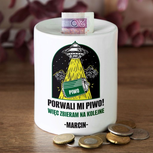 PERSONALIZOWANA SKARBONKA BIAŁA DEKORACYJNA NADRUK NA PREZENT
