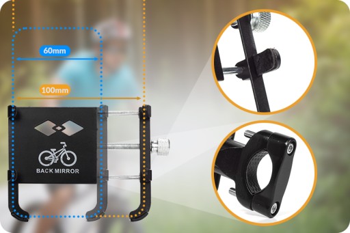 Szczęki uchwytu rozsuwają się od 60mm do aż 100mm. Aktualnie nie ma na rynku telefonu, który by taką szerokość osiągnął. Wysokość uchwytu nie ma znaczenia - uchwyt jest otwarty od góry co pozwala na zamocowanie telefonów o różnych proporcjach szerokości do wysokości.