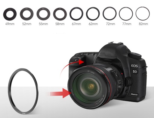 Pierścienie przygotowane dla obiektywów o średnicy: