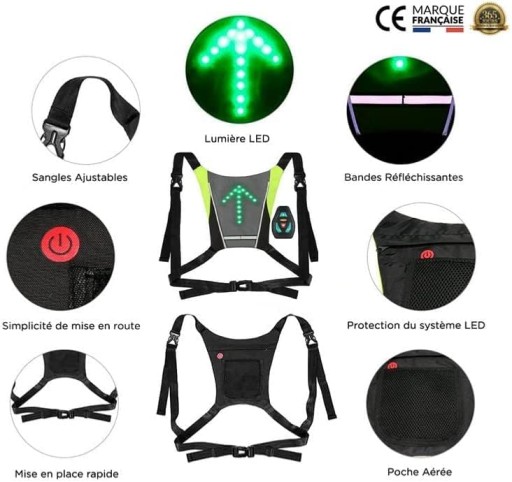 Odblaskowa kamizelka rowerowa Diavo – wyposażenie ochronne do hulajnogi, roweru, roweru górskiego, wyścigów, ładowana przez USB z migającą diodą LED i pilotem, łatwa instalacja