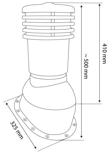Zaawansowany kominek dachowy Eurovent® VENTOS X BITU O o przekroju wentylacyjnym 170 mm oraz średnicy 150 mm wykonany z wysokiej jakości tworzywa sztucznego. Budowa kominka wspomaga wentylację wykorzystując do tego energię wiatru, zapewnia prawidłowy ciąg kominowy. Posiada system antykondensacyjny, który odporwadza skropliny na zewnątrz dachu. Profilowana nasada zapobiega napływaniu wody opadowej. Regulacja kąta nachylenia od 5° do 45°. Posiada podstawę do montażu kominka na blachodachówkach o przetłoczeniu BITU O. Dostępny w kilku najpopularniejszych wersjach kolorystycznych wg kolorystyki RAL.