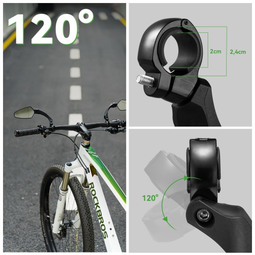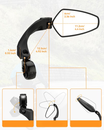 Lusterka rowerowe pasują do kierownicy w zakresie 20mm-24mm (średnica zewnętrzna), zarówno po lewej, jak i po prawej stronie. Można go przymocować do hulajnóg, rowerów miejskich, rowerów górskich, e-rowerów itp.