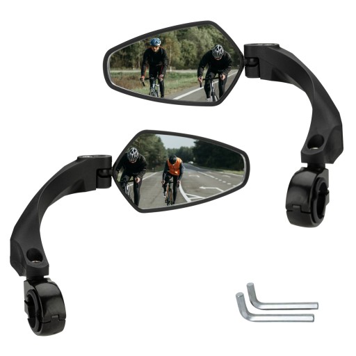 Rowerowe lusterka wsteczne można zainstalować po lewej i prawej stronie okrągłej kierownicy. Aby zainstalować, użyj klucza imbusowego (w zestawie), a następnie dokręć, aby zapewnić bezpieczną blokadę.