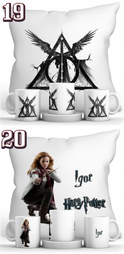Zestaw Poduszka + Biały kubek - HARRY POTTER + w cenie możliwość nadrukowania imienia lub innego tekstu na produkcie.