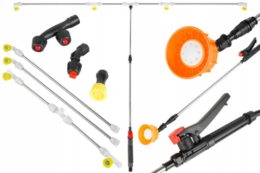 W zestawie z urządzeniem dostarczane są różne dysze do różnych zastosowań, przewód giętki (gumowy) oraz teleskopowa lanca z wygodnym spustem wyposażonym w blokadę.