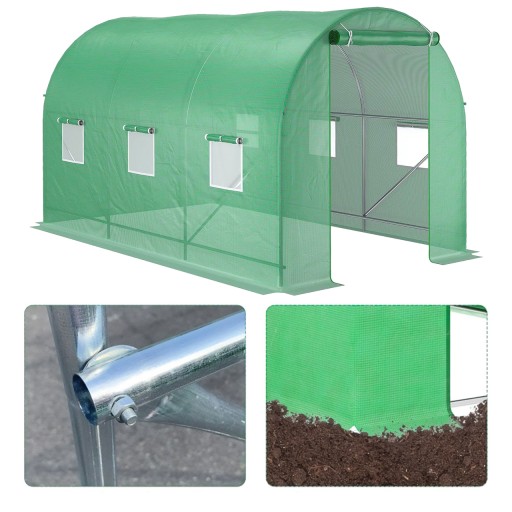 Dzięki temu możesz swobodnie wchodzić i wychodzić ze szklarni. Rozwiązanie można również wykorzystać do przewietrzenia wnętrza. Drzwi zapinane na zamek błyskawiczny.