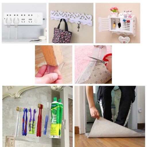 Z powodzeniem przykleisz do niej dywan, żeby pozostał na swoim miejscu, przymocujesz półkę czy uporządkujesz kosmetyki w łazience lub przybory w biurze. To także znakomity produkt pomocny w organizacji kluczy, kabli czy przyrządów kuchennych.