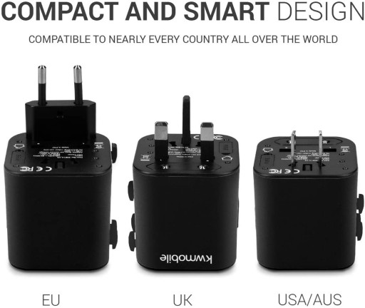Dla wielu gniazd wtykowych: Adapter kwmobile world nadaje się do gniazd typu A, B, C, E, F, G, I, J i L, dzięki czemu jest uniwersalnie stosowany w wielu krajach Europy, Afryki i Azji, Ameryki i Ameryki Południowej, a także Australii!