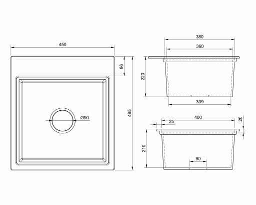 - Wymiar zlewozmywaka: 450 mm x 495 mm