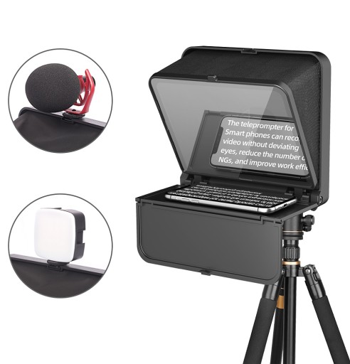 Teleprompter Ulanzi o kompaktowej i składanej konstrukcji, to proste i funkcjonalne narzędzie ułatwiające nagrywanie filmów wideo z przygotowanym wcześniej scenariuszem za pośrednictwem telefonu.