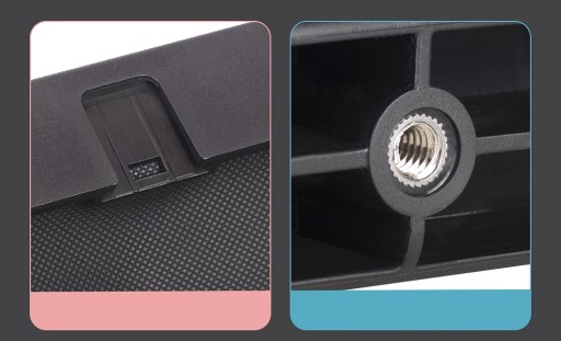 - Teleprompter posiada zimną stopkę typu ISO do zamocowania dodatkowych akcesoriów takich jak lampa LED lub mikrofon