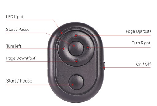 Dodatkowym ułatwieniem podczas nagrań jest pilot bluetooth, dzięki któremu masz cały czas pod kontrolą całą prezentację, możesz przewijać tekst, ustawić prędkość jego wyświetlania lub zmienić kolor tła. Pilot należy połączyć z telefonem z którego wyświetlane są teksty i na który została pobrana odpowiednia aplikacja.