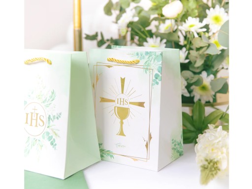 Torebka prezentowa ozdobna komunijna kielich IHS 20cm