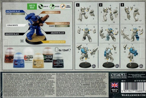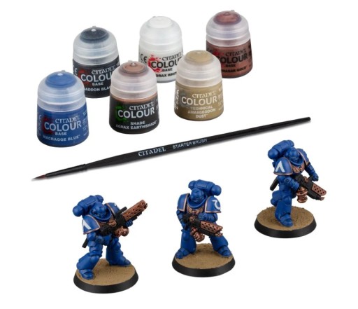 The six Citadel Colour paints are supplied in 12ml pots, and feature the essential colours needed to paint these miniatures as Ultramarines as well as a Technical paint to create textured bases:
