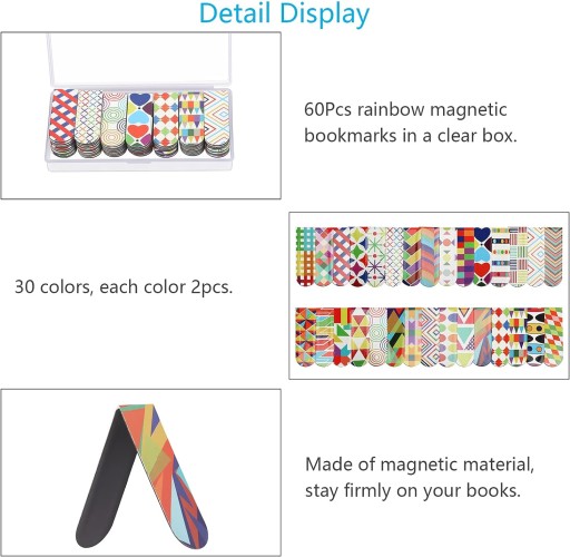 - Zakładki w kolorach tęczy: łącznie 60 magnetycznych zakładek w tęczowych kolorach spełni Twoją codzienną lekturę i można nimi dzielić się nimi z przyjaciółmi. Nadają się doskonale do oznaczania następnej pozycji do czytania. Te zakładki to wspaniałe akcesorium do pisania, które można czytać.