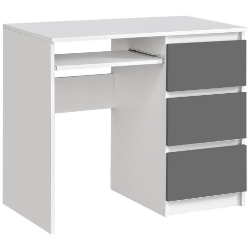 Письменный стол с 3 ящиками правый, БЕЛЫЙ + СЕРЫЙ