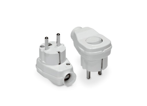 Wysokiej jakości wtyczka kątowa Uni-Schuko rozbieralna do urządzeń zasilanych prądem znamionowym 250V. Idealna do instalacji sieciowych.