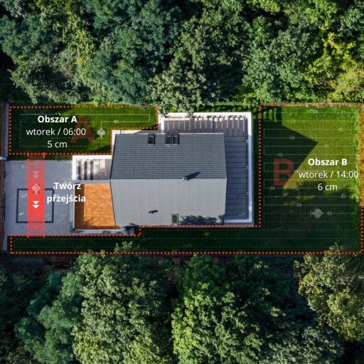 Ustaw różne harmonogramy, tryby koszenia i wysokości koszenia dla każdej strefy koszenia.