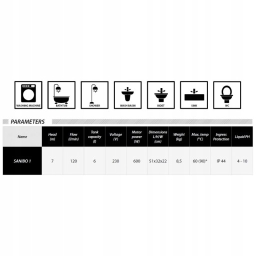 Przepompownie serii Ibo Sanibo są mocne, odporne na zużycie i mają jedną z najbardziej zaawansowanych i niezawodnych konstrukcji na rynku. Pompy można stosować wszędzie tam, gdzie toaleta jest zainstalowana za kanalizacją lub pod kanalizacją budynku. Przepompownie Ibo Sanibo stosowane są w budynkach mieszkalnych do pompowania wody ściekowej. Pompy doskonale nadają się również do usuwania wody z toalet wraz z umywalkami, kabinami prysznicowymi, pisuarami czy bidetami. Typowe zastosowanie - 1 toaleta i 2 umywalki/prysznice/pisuary/bidety. Przepompownie serii Ibo Sanibo wyposażone są w mechanizm pływakowy, który odpowiada za zatrzymanie pompy w przypadku zapełnienia zbiornika. Pompę można uruchomić ręcznie. Pompa Ibo Sanibo jest idealnym rozwiązaniem do użytku domowego dzięki cichej pracy i kompaktowej konstrukcji.