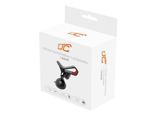 Element trzymający, zamocowany został na obrotowej główce, co umożliwia swobodny obrót urządzenia, znajdującego się w uchwycie, o 360 stopni. Przyssawka wykonana z silikonu gwarantuje pewne trzymanie na szybie pojazdu.