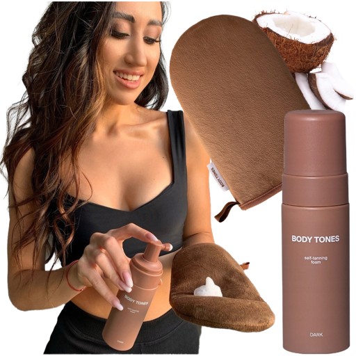 Zestaw Body Tones Rękawica do nakładania samoopalacza + Pianka opalająca do ciała BODY TONES Samoopalacz do każdej karnacji 155 ml