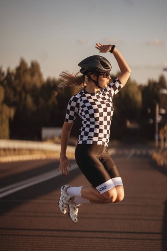 Nie bez znaczenia jest zastosowanie szerokiego, dolnego antysplipu, który nie tylko stabilizuje koszulkę poniżej linii talii, ale także poprawia wygląd sylwetki podczas jazdy na rowerze. Z myślą o nadaniu smukłości wydłużone zostały rękawki, dodatkowo zabezpieczone przed podwijaniem poprzez cienką warstwą trwałego silikonu. Dla poprawy komfortu, zwłaszcza w cieplejsze dni zaprojektowano niską stójkę w celu eliminacji ucisku szyi.