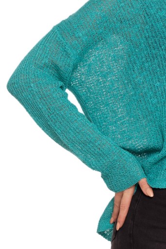 Dzięki uniwersalności i ponadczasowej konstrukcji, ten ażurowy sweter damski jest idealny do noszenia zarówno w ciągu dnia, jak i wieczorem. Doskonale komponuje się z wąskimi jeansami, eleganckimi spodniami, jak również z długimi spódnicami, tworząc wielowymiarowy look, który przyciąga spojrzenia.