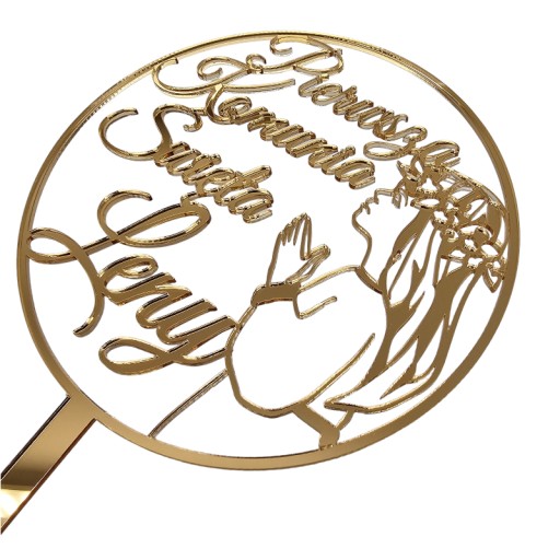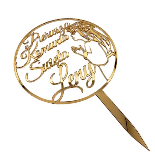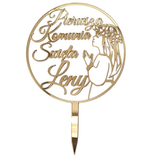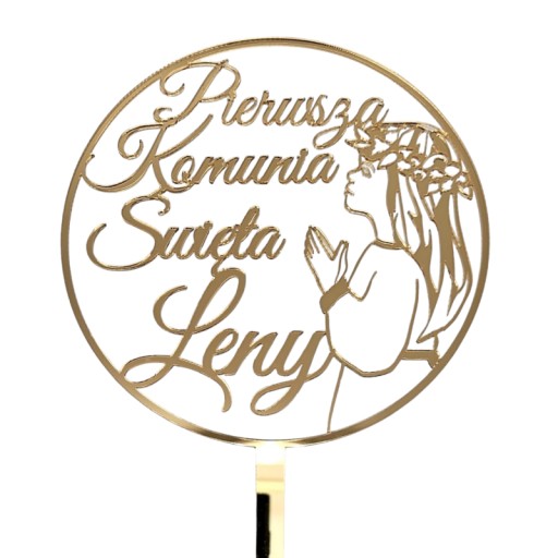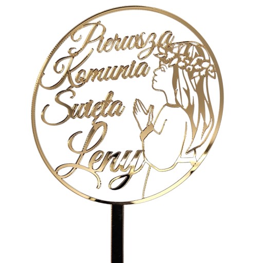 Топпер для первого причастия с именем и девушкой, золото ИМЯ причастия, золотое зеркало