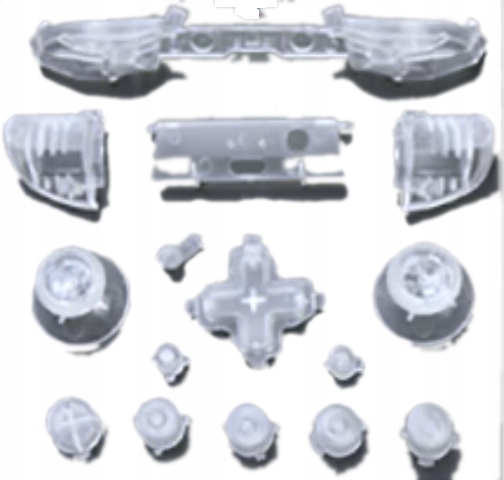 - W zestawie znajdują się wszystkie części widoczne na zdjęciu: przyciski, triggery, bumpery, d-pad, grzybki