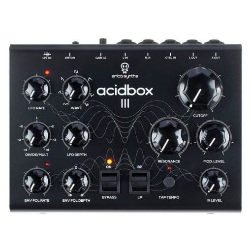 - Configurable input for footswitch, expression pedal and external LFO / cutoff control