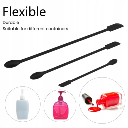 Funkcja:1. Dwustronnie zakrzywiona konstrukcja: silikonowa mini szpatułka ma wąską główkę i długi uchwyt ułatwiający chwyt, a dwustronnie zakrzywiona konstrukcja pozwala jej dostać się głęboko do butelki bez marnowania ostatniej kropli produktu do pielęgnacji skóry, którego chcesz użyć.