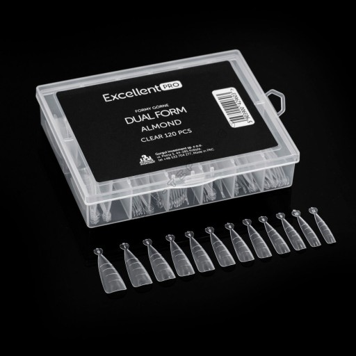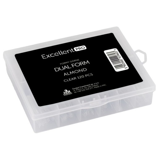 Zestaw składający się z 120 dual form w kształcie migdała. Te transparentne formy marki Excellent PRO są doskonałe do tworzenia eleganckich, migdałowych paznokci akrylożelowych zarówno w profesjonalnym salonie, jak i w domu. Doskonale dopasowują się do naturalnej płytki paznokcia, gwarantując łatwość w aplikacji. W opakowaniu znajdziesz 12 różnych rozmiarów form, co pozwoli na idealne dopasowanie do każdego paznokcia. Formy są wielokrotnego użytku i są elastyczne i wytrzymałe.